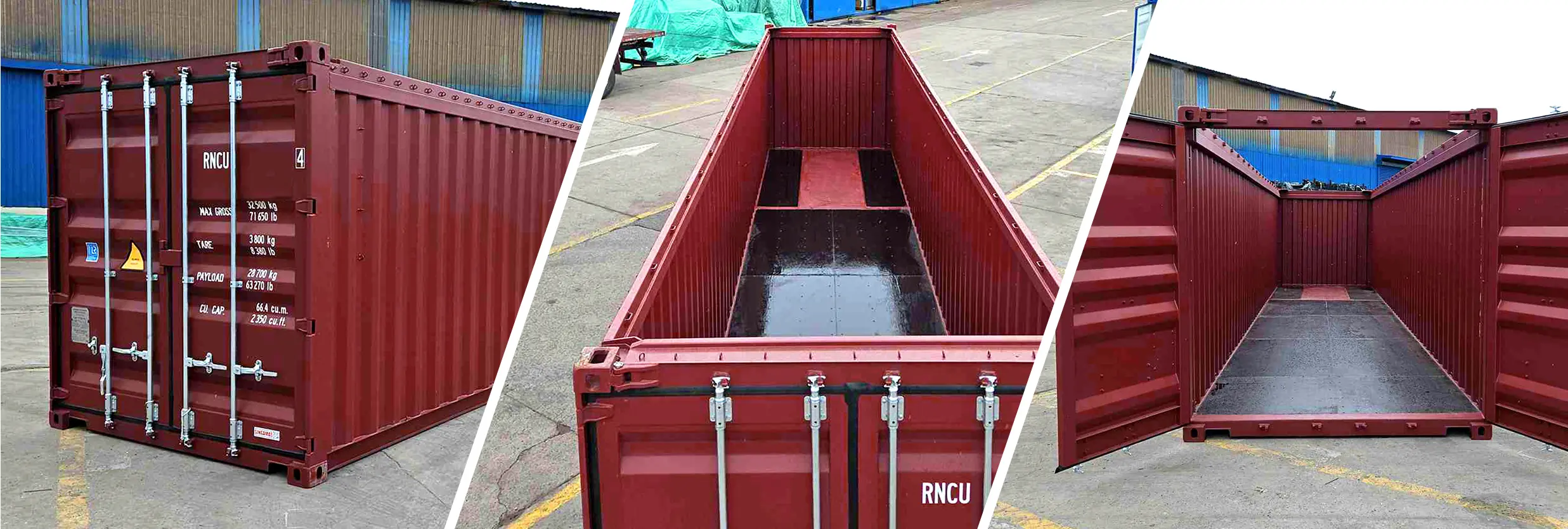 コンテナの屋根(ルーフ)部分が開放出来るコンテナです。長尺物・重量物を上部から搬出入可能でコンテナの全高以上の高さの貨物の輸送に使用できます。