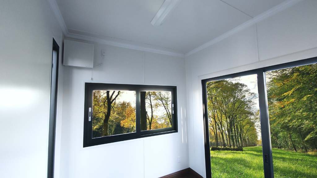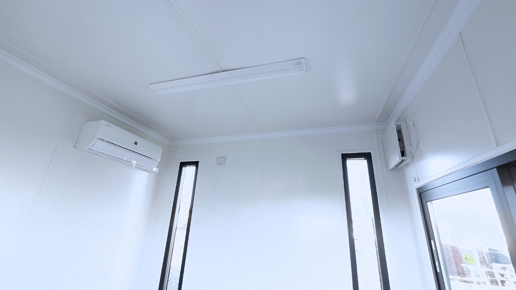 内装、エアコン、換気扇、通気口、コンセント等が予め装備されたオールインワンのコンテナハウスですので、ご購入後すぐに、お客様の用途に合わせご利用頂ける製品です。
